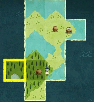 树林中同样有一个白色碎片,将其拼入后会出现一个新的NPC“阿伯”。阿伯找不到回家的路,卡朵需要将阿伯所在的版块拼到此前房子的东边。