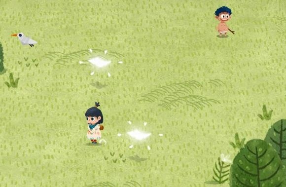 从飞机上掉落下来后,卡朵便开始了正式的游戏之旅。玩家可以在灌木旁在捡到地图卷轴,进入教学内容。