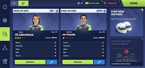3、玩家需要制定战略,提升赛车手的能力,解锁更多赛车和场地,最终成为赛车传奇。