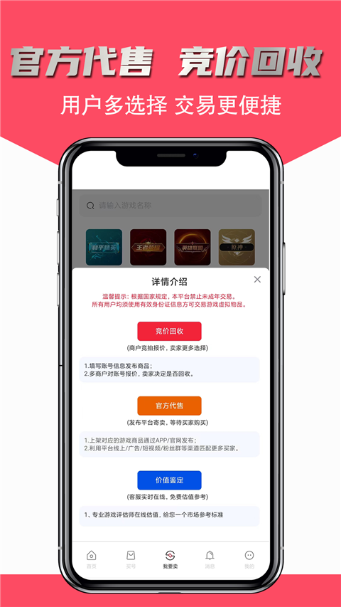 飞衡代售app是一款涵盖了海量游戏资源的交易软件,这款软件内为用户提供了大量的游戏交易功能,无论你是想要进行进行二手回收,卖号还是卖号等服务,这款软件都能轻松满足你的需求,没有中间商赚差价,用户可以放心下载使用,感兴趣或者有需要的小伙伴就快来kk网站下载体验一下吧。