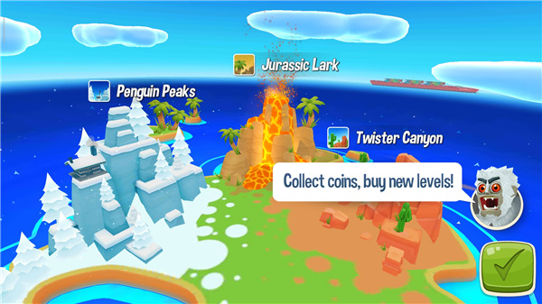 1、3D场景:经典企鹅峰,神秘侏罗纪,月球探险,绝妙场景肆意滑行!