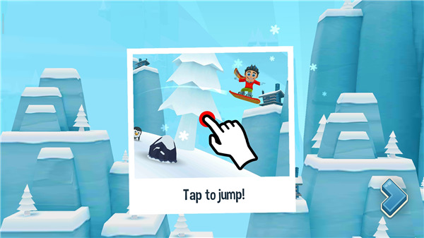 1、首先进入滑雪大冒险2游戏,这里会有新手教程,点击屏幕可以进行跳跃,长按可以后空翻,在屏幕上滑动可以表演炫目特技,尝试向不同的方向滑屏;