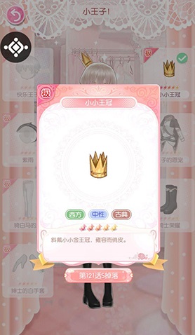 不同于公主,我们小王子的王冠是斜戴的。古典纯金的质地,小巧简单的样式。既显出了王子尊贵的身份,又体现了他的不拘一格。获得方式是主线121话S评分掉落。