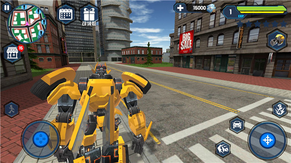 游戏里玩家可以操控强大的变形机器人在城市里自由行动,机器人配备了多种武器可供玩家使用。