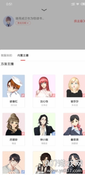 5、还可以更换的自己喜欢的主播为您阅读