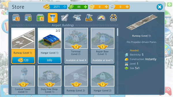 3、建造各种机库和跑道以容纳更多飞机并增加您的收入。