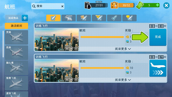 玩家点击左下角地球图标,即可进入航班飞行,完成航班可以获得奖励。