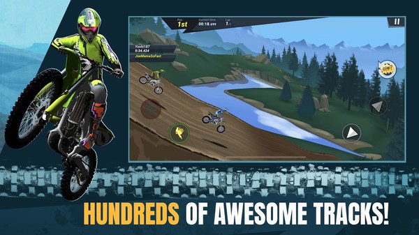 带领玩家在职业生涯和时间竞速两个模式之中,去体验极速刺激而且疯狂的越野摩托车竞赛,感受速度与激情的碰撞。