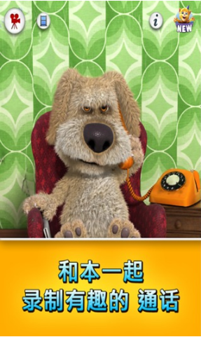 5、按下电话按钮,与本交谈,录制你和本在电话上交谈的有趣视频,录制视频与人分享,或者将它们通过电子邮件或彩信发送给亲友。