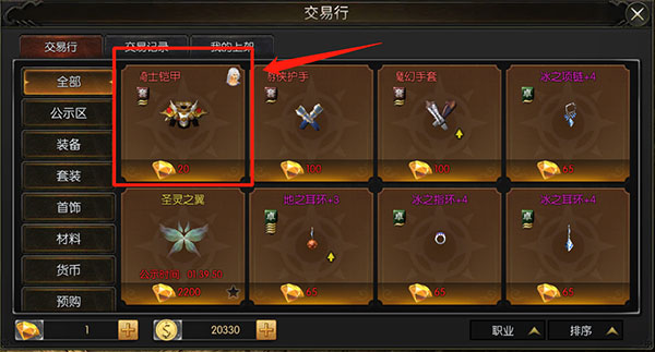 5、玩家交易存在交易税,本服交易交易成功会扣除卖方15%的交易税,买方不需承担,而跨服交易的交易税为30%。玩家在上架装备材料后,交易区会在该装备右上角显示一个头像,带有改头像的装备即为玩家自己的上架装备,非常方便查看。