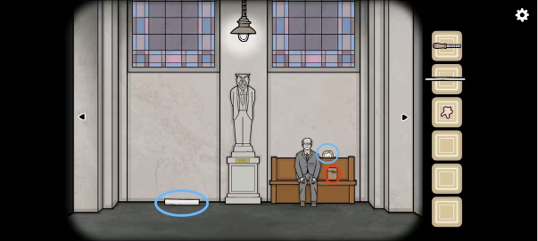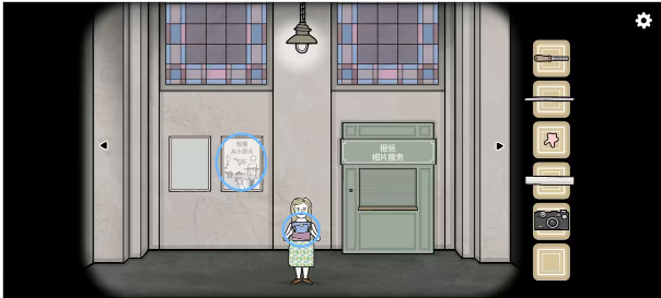 2、和劳拉玩完捉迷藏拿走手里的「玻璃板」,再点击左侧的海报,根据从小到大的提示依次点击画报场景里的物品(如上图)获得「钥匙」。