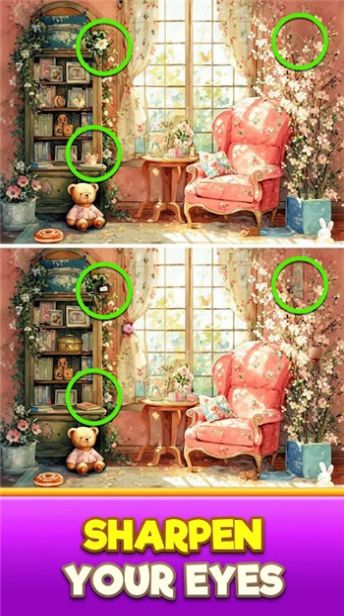 1、游戏通过对比图片找出差异,锻炼观察力和细致性,激发玩家的思维和注意力。