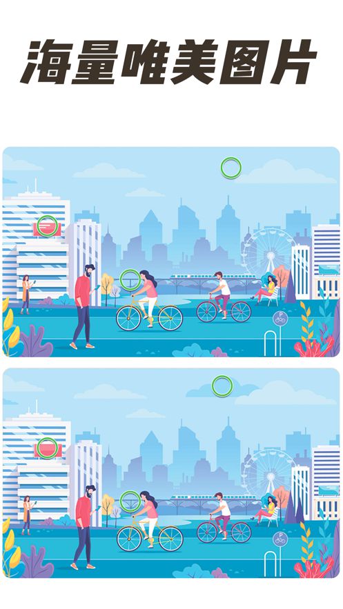 全民找茬,一款超刺激的休闲益智游戏!游戏画面精美,场景丰富多样,从奇幻仙境到都市街景,每一处都暗藏玄机。它具有海量关卡,难度循序渐进,适合各年龄段玩家挑战。玩家需在限定时间内找出两张图的不同之处,紧张又有趣。还能与好友比拼成绩,增添社交互动乐趣。全民找茬不仅能锻炼玩家的观察力和反应力,更能让你在轻松愉悦的氛围中享受找茬的独特魅力。