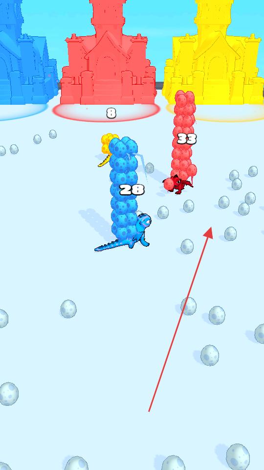 2、带着收集好的龙蛋,朝着其他颜色的敌方角色移动,移动时留意场景中的阻碍,保持移动方向,为后续的对战做好准备。