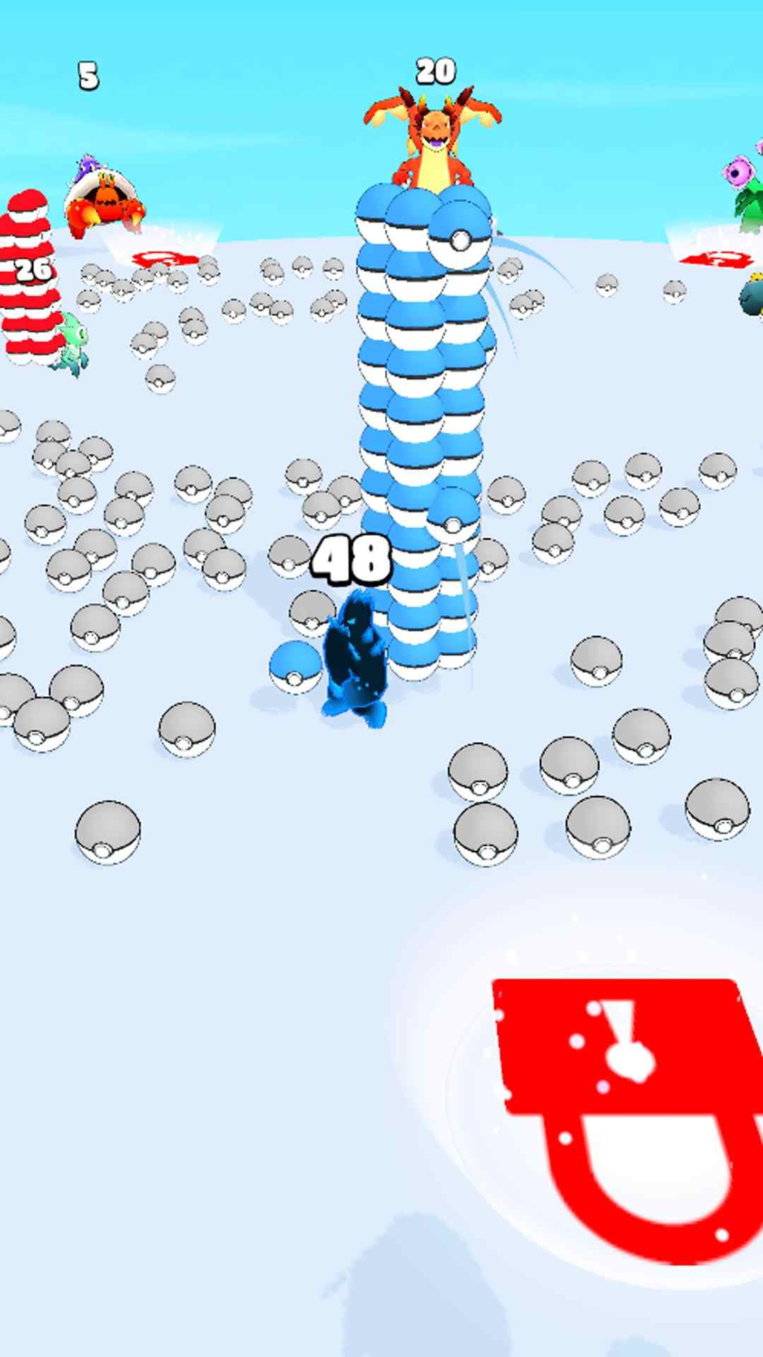 1、操控蓝色角色移动到散落的龙蛋旁,让角色接触龙蛋,角色会开始收集龙蛋,收集后角色周围的龙蛋数量会逐渐增多。