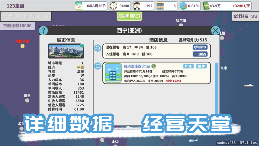 3、在游戏中,玩家可以自由的选择在世界的各个不同的城市中开设酒店。