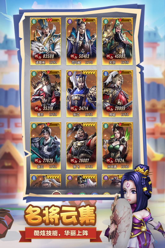 1.自由养成各类武将,充分挖掘他们的潜力,展现卓越战力。