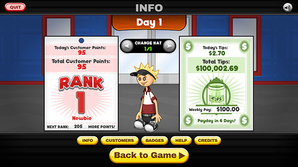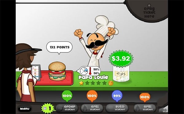 5、客人一到就要招呼,不过在他走路的几秒钟可以去干别的。所以招呼门铃这个道具还是很有必要的。因为他在等点餐的时候已经开始下降服务评价了,不过一旦点餐结束,去等餐的时候,因为你有很多道具给他耍,他的服务评价下降得就很慢了。