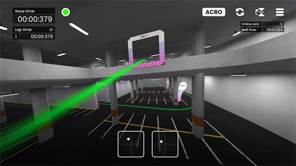 3、游戏界面有左右两个按钮,左边可以控制无人机的加速方向,右边可以控制无人机机头的指向;