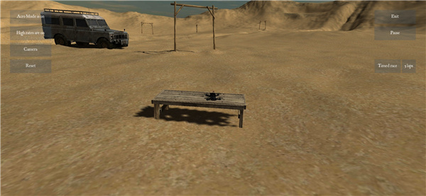 2、进入后可以看到左侧的分别是自调平开启,高帧率开启,第三人称视角和最后的重置;右侧则是退出按钮和暂停按钮;