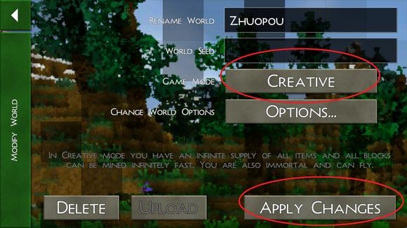 五、返回存档界面,选择更改为创造模式的,开始游戏。