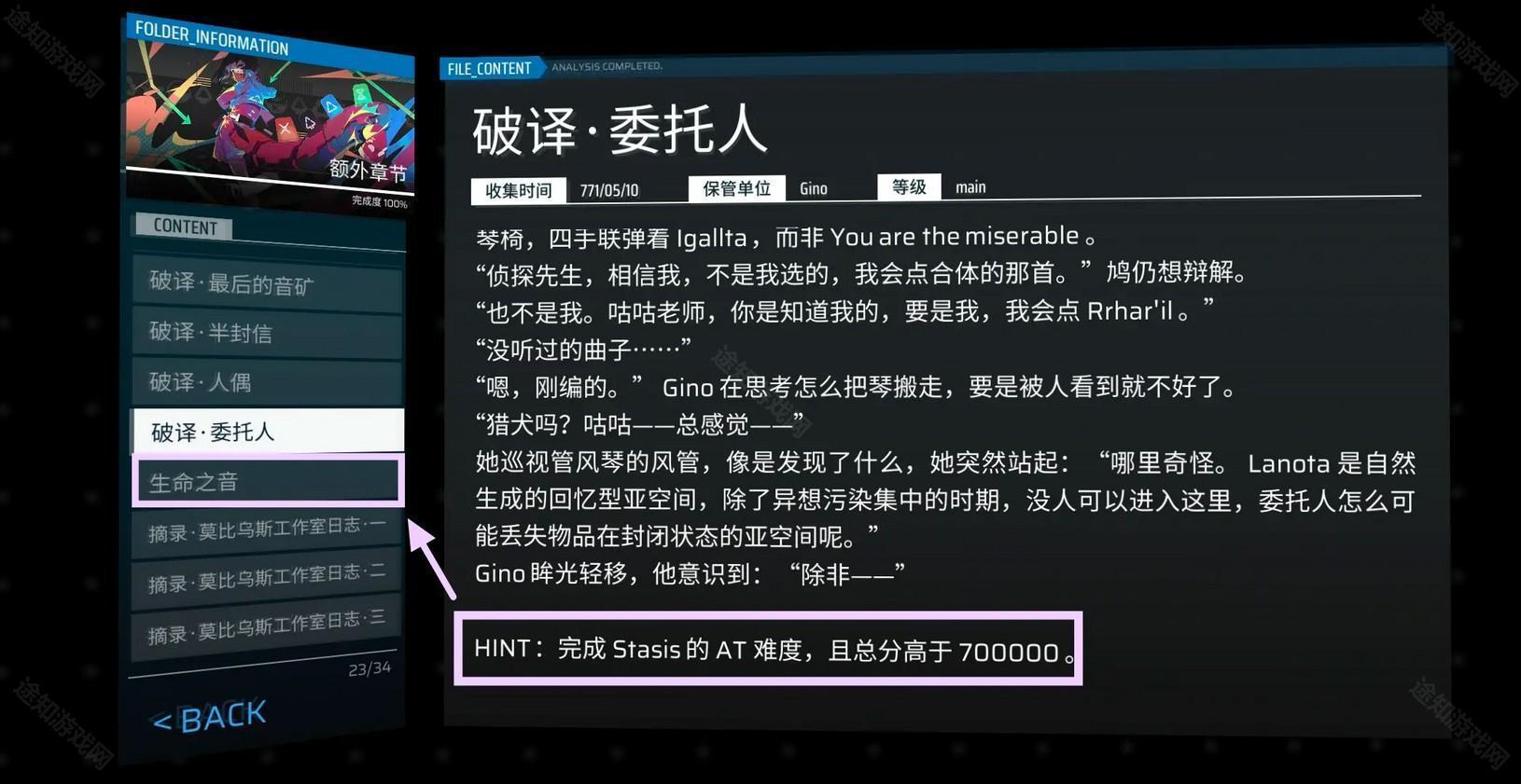 注:「破译·最后的音矿」只需要游玩该章节默认解锁的第一首歌就会掉落,只有这个掉了之后才能跟着去做后面的解谜