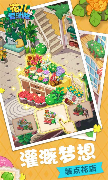 《花儿爱消除》是一款特色花店经营消除手游,由国际顶尖休闲手游开发团队——mybo倾力打造。创新点消玩法,温馨花店经营,早已风靡欧美,收割无数少女心。2019年《花儿爱消除》正式登陆中国,你的少女心是否已经怦然心动,一起“经营小确幸,消除不开心!”