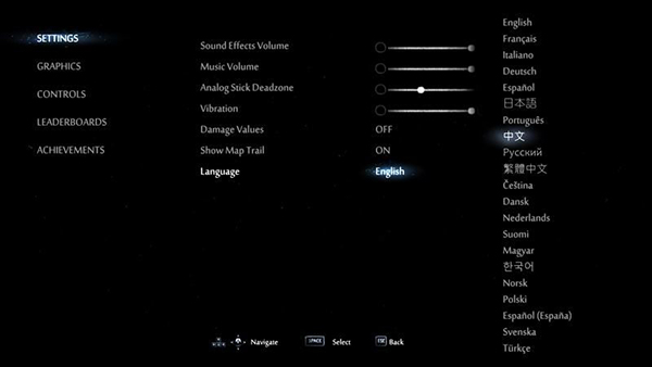 4、进入游戏看到是英文界面,在主菜单点击Options进入设置,选择SETTINGS中的Language即可将语言切换成中文;