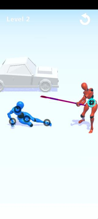 3、游戏玩家的手指在机器人的手和脚上滑动,帮助自己完成很多关卡的战斗