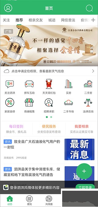 1、下载安装后,打开动态页,就能看到本地最新新闻和便民信息。