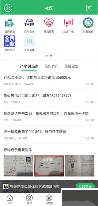 4、社区页面集合了各种分类信息,想查什么服务都能找到。