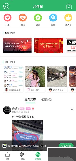 3、风情圈里能晒生活日常,和附近的人聊聊天、交朋友。