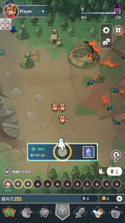 1. 多种可爱动物角色等玩家解锁,每个角色都有独特技能,合理搭配阵容,打造最强冒险小队。