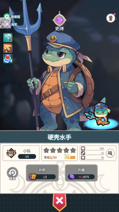 2. 通过“角色”按钮查看已解锁的萌宠英雄,使用金币或道具进行强化、升阶,提升战力,让队伍更强大。