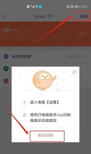 3、然后点击右上角添加,点击“前去扫码”。