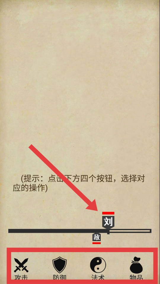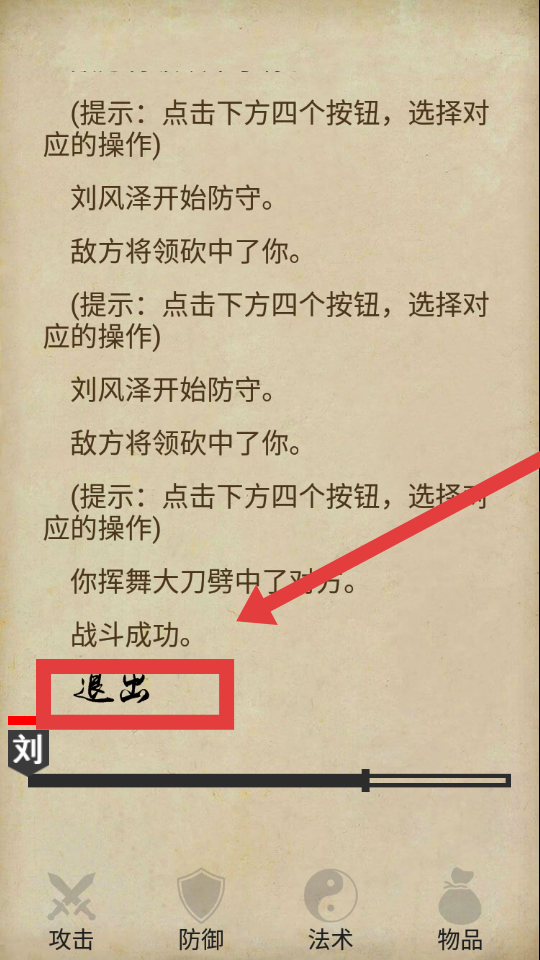 3、战斗时根据提示点击下方攻击、防御等按钮,选择操作应对敌方攻击,像你挥舞大刀劈中对方完成战斗,胜利后可继续推进剧情。