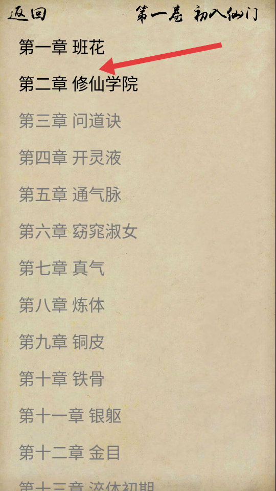 2、玩家在章节选择界面,点击如第一章班花、第二章修仙学院等章节标题,进入对应章节,体验不同阶段的故事内容。