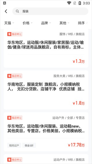 2、搜索成功后可以看到有店铺转让