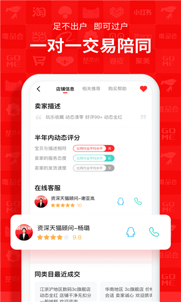 易店无忧是一款网店交易软件,聚集拼多多、京东、淘宝等平台的精选网店资源,营业项目、商标属性等信息随时查询,帮助电商找到心仪的店铺。凭借深耕店铺转让7年的经验,重新打造店铺估价体系,一对一线上交易陪同,转让更安心。