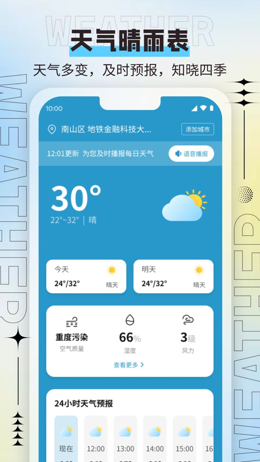 3、提供语音播报功能,通过语音的播报,让我们更好去了解气象动态。