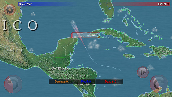 3、在这里,我们可以操控台风的趋势,伤害越大,风越大。