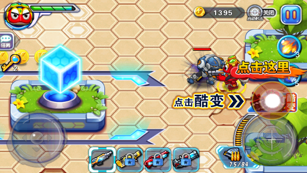 3、小兵小卒你可以不费吹灰之力打败他们,但是遇到超级强大的 酷霸巨星就需要对武器进行升级啦,同时你还可以对酷宝进行升级,还可以 选择酷宝皮肤。