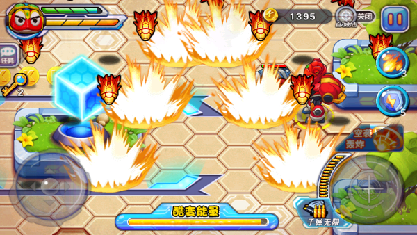 2、注意有敌人来的时候你需要与他们拉远距离,因为你是远程攻 击的,一直点击右下角的攻击按钮不动可持续射击敌人。