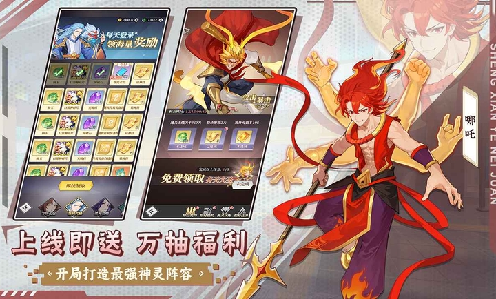 1、集结神庭(东方系)、妖府(二次元)、冥殿(西方系)三大阵营,自由混搭孙悟空、宙斯、阿努比斯等SP级神仙。