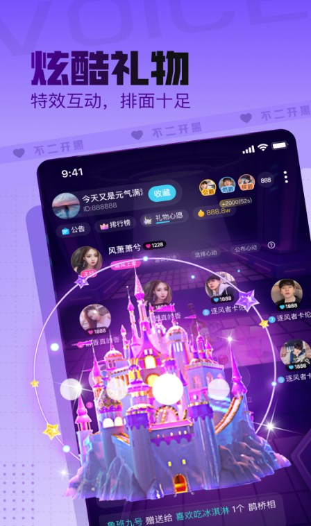 3、提供了娱乐k歌、语音互动、游戏开黑等多种功能。
