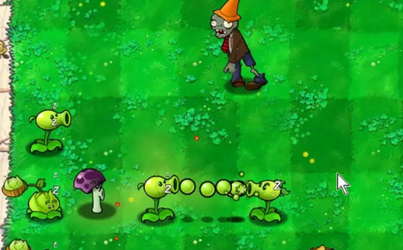 3、其他植物只有在被子弹命中时才能发射子弹,例如:胆小菇放在豌豆射手后面,胆小菇的子弹射在了豌豆射手身上,豌豆射手才能发射子弹。