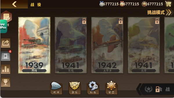 2、将领系统包含隆美尔、朱可夫等名将,其特有战术影响所属军团士气与攻击范围。