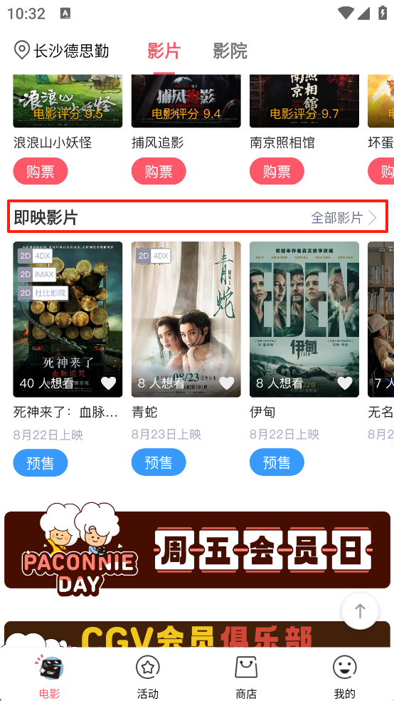 观影权益和优惠:app内集结了CGV独享的观影权益和优惠购票福利。