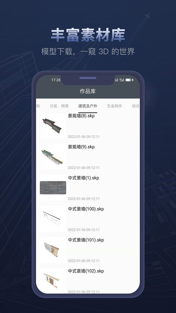 内置丰富的材质库与组件库,用户可通过在线资源库便捷调用大量模型资源。