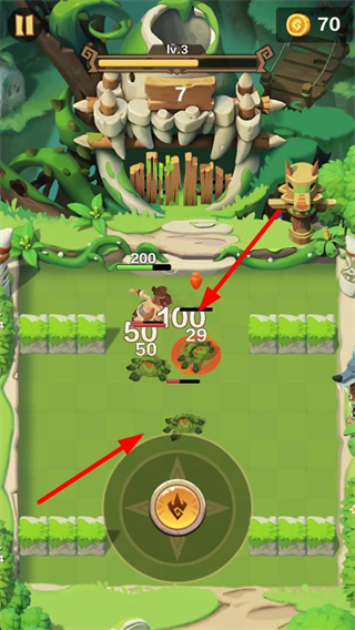 2、在场景里操控角色攻击如青蛙类的敌人,削减敌人血量,推进关卡进程,同时可获得金币等奖励。